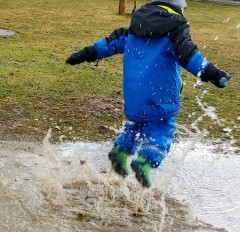 Eine Wasserpfütze übt eine unfassbare Faszination auf Kinder aus.